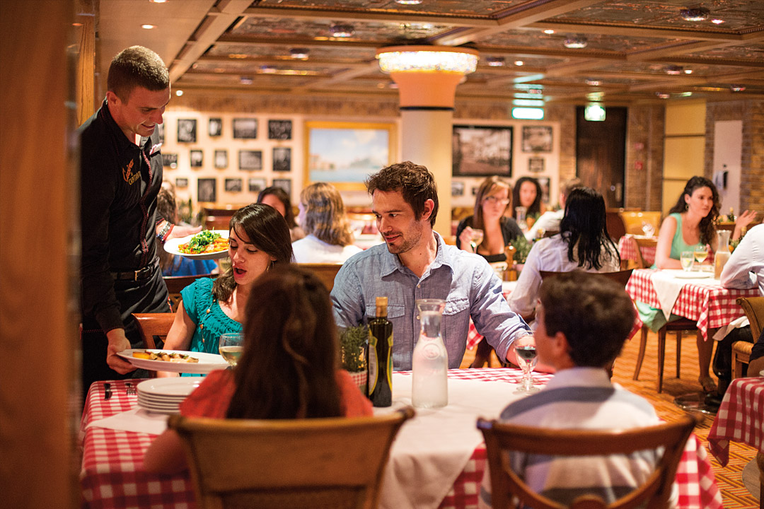 Carnival Cruise Line's festive-yet-casual onboard atmosphere can even be found in their various dining venues. You can always enjoy breakfast, brunch, lunch, and dinner in the Main Dining Room with open-seating "Your Time Dining" and an amazing menu featuring fan-favorite Carnival meals and selections from Emeril Lagasse and Carnival’s chefs. There is also casual bistro dining in multiple venues as well as specialty restaurants that vary by ship and charge an additional fee and/or require reservations.