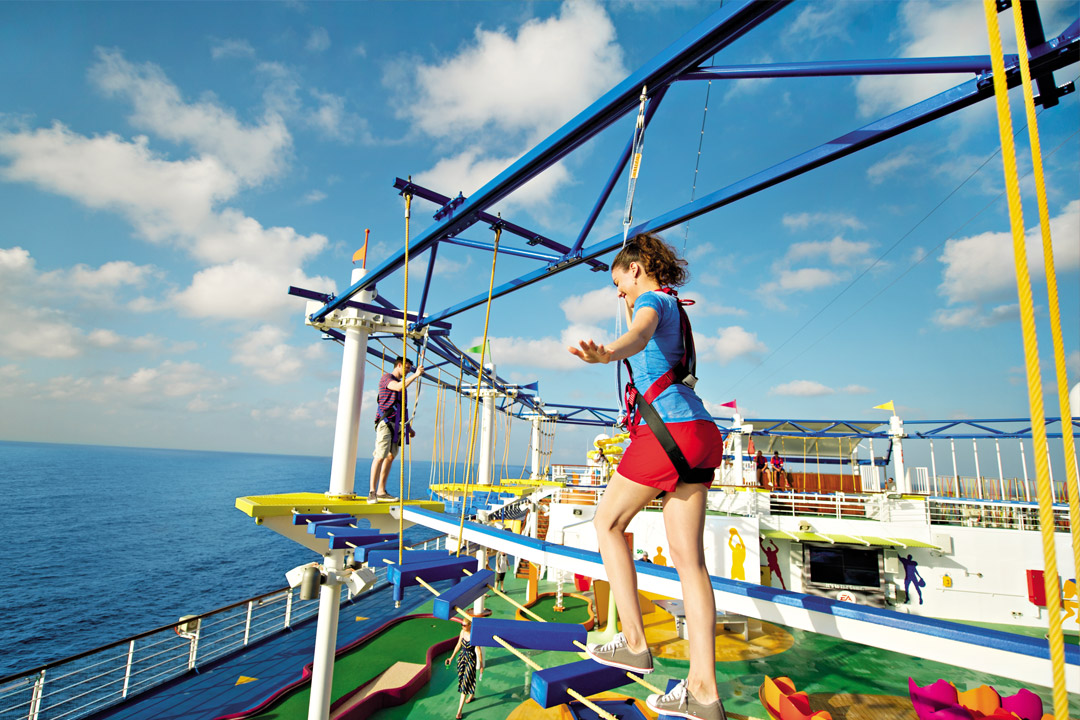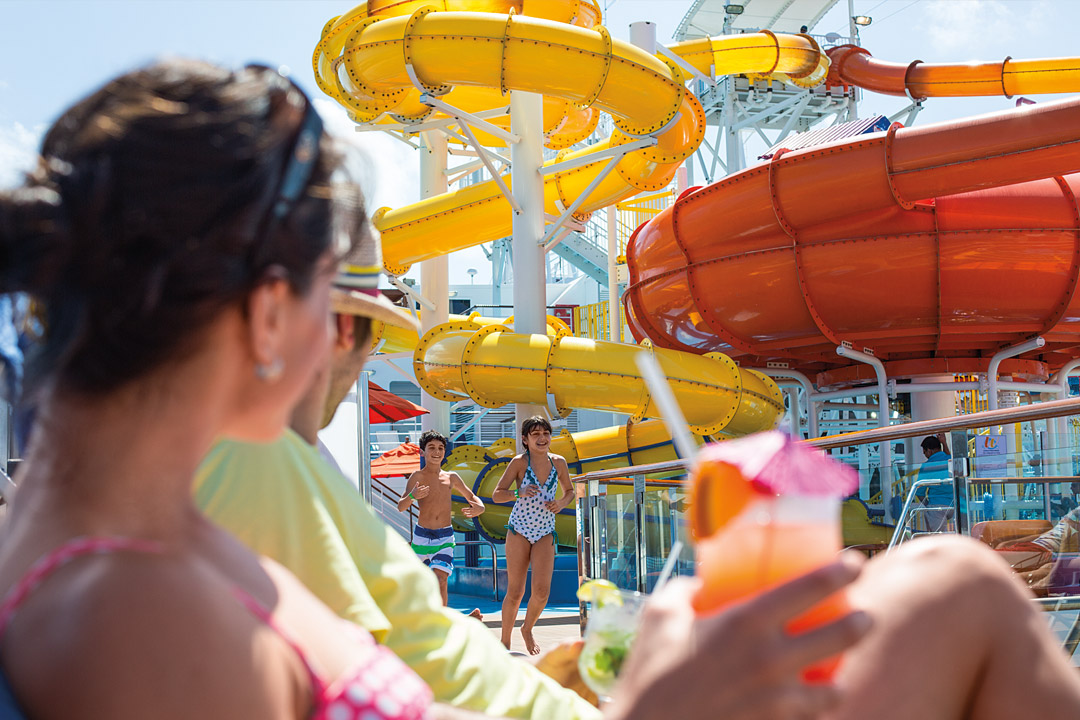 Among the fabulous features available on select Carnival ships (for example, Carnival Breeze, Carnival Dream, Carnival Magic, Carnival Pride, Carnival Sunshine, and more), is Carnival’s WaterWorks Park, an elaborate waterpark featuring a giant twister waterslide and other attractions, such as side-by-side racing slides, Speedway Splash, PowerDrencher, and more (slides depend on the ship). Carnival’s Seaside Theatre is a 12-foot-high by 22-foot-wide LED screen located poolside on select Carnival ships, showing movies, sporting events, concerts, and other special programming. Mardi Gras, Carnival Celebration, and Carnival Jubilee offer their guests an unforgettable ride on BOLT: The Ultimate Sea Coaster, the fastest — and first! — rollercoaster at sea; while Carnival Vista and Carnival Panorama let you take a course in a pedal-powered go-mobile known as SkyRide. Besides, you can spend hours playing video games in The Warehouse, find an oasis of friendly competition at SportSquare, and more!