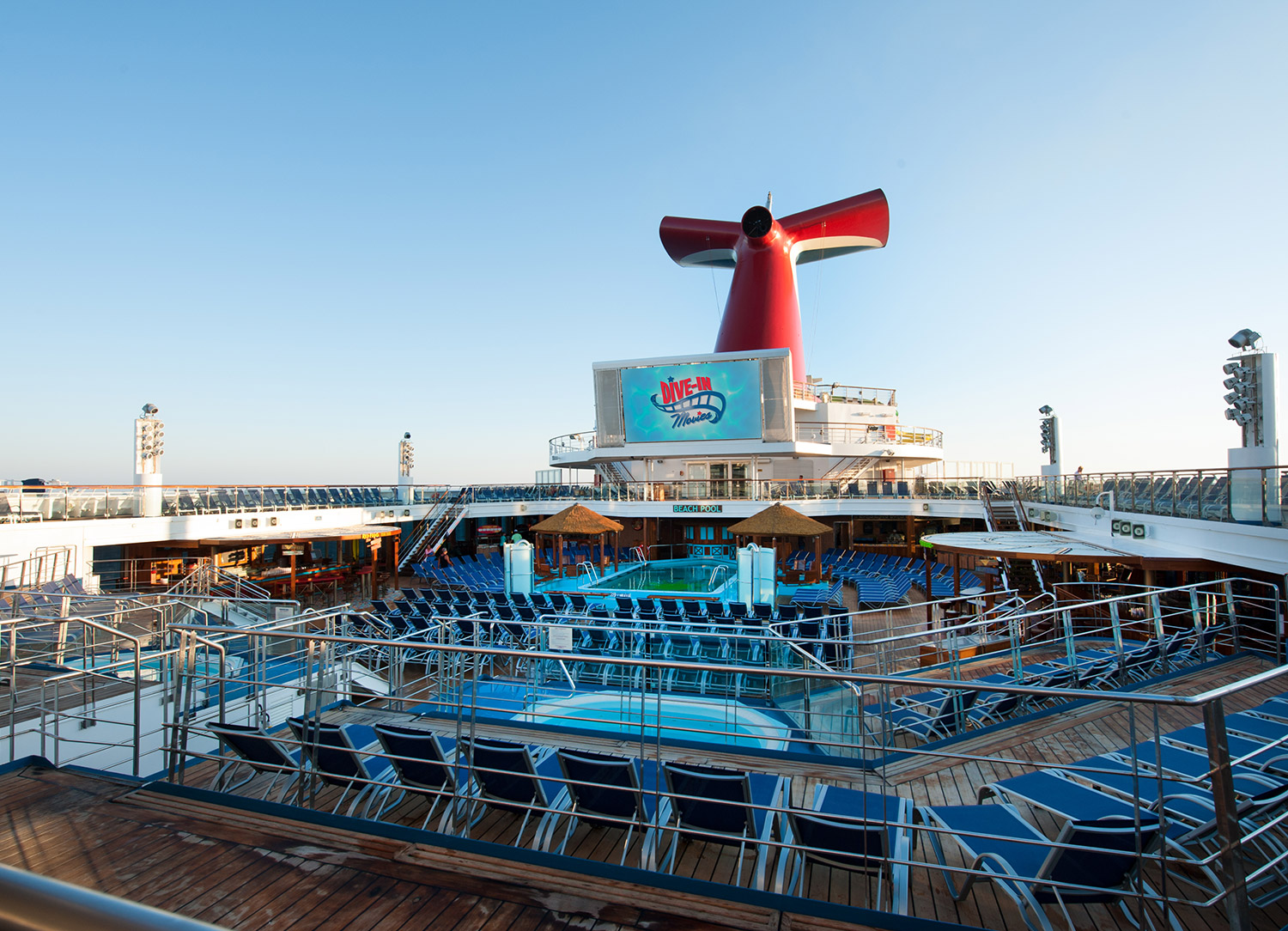 This outdoor giant screen plays all different types of entertaining shows throughout each Carnival Breeze cruise, including blockbuster movies, concerts, and sporting events. You can grab a seat on the deck or even watch right from the pool!