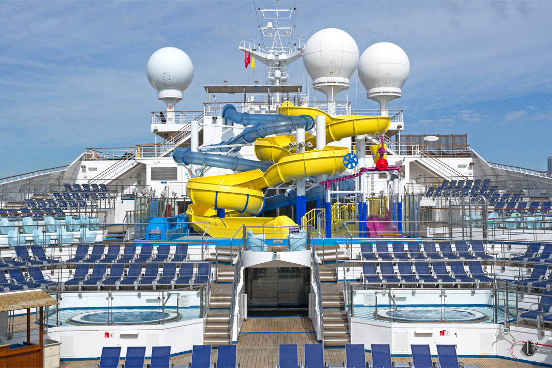 As soon as you see this large waterpark, you’ll find yourself changing into your bathing suit faster than ever! Located on Deck 10, Carnival WaterWorks is a brand-new addition to Carnival Glory and features the AquaTunnel, a giant enclosed tube slide, the Power Drencher, a humongous 75-gallon bucket ready to soak you silly, and of course the signature Twister Waterslide, a three-deck-high waterslide with daring twists and turns that will have you screaming all the way to the bottom. There’s also a splash and spray park and mini racer slides for the little ones who may not be up to or old enough for the bigger attractions.