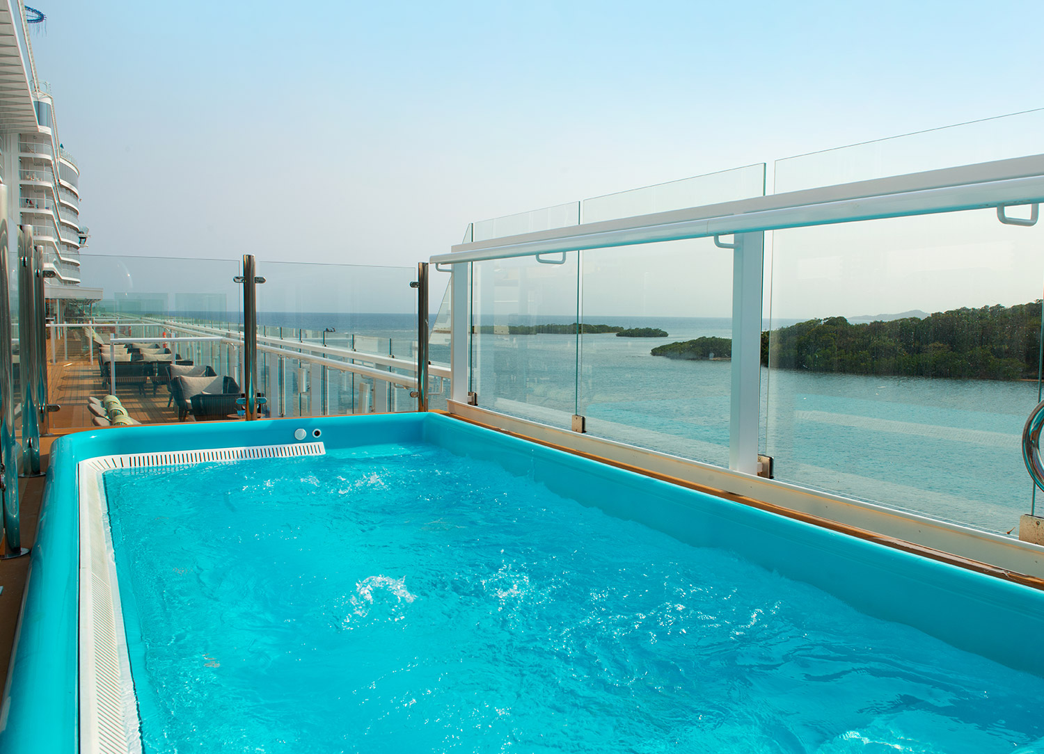 If you are looking for a quiet and relaxing place to unwind aboard Carnival Jubilee, look no further than Serenity. An adults-only area of the ship, Serenity is the perfect place to read a book, have a drink from a bar, and rest on a hammock or lounge chair.