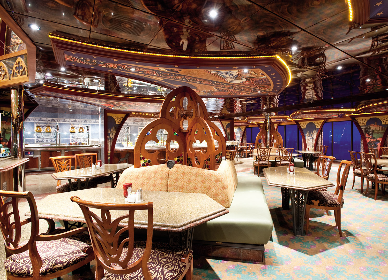 Fire up your appetite during your Carnival Legend cruise with nearly endless dining options onboard. The primary place for a delicious meal is Truffles Restaurant, the main dining room, where you can choose to have assigned or open (Your Time) dining. Other popular dining scenes are the Unicorn Café, featuring a large buffet, BlueIguana Cantina, Guy’s Burger Joint, Seafood Corner, Carnival Deli, delicious Pizza Pirate, Cherry on Top, and more. There is also Fahrenheit 555 Steakhouse, a dedicated Chef's Table, casual poolside restaurants, numerous bars & lounges, and the ever-advantageous 24-hour room service if you prefer to dine in privacy or if you need something on a whim.