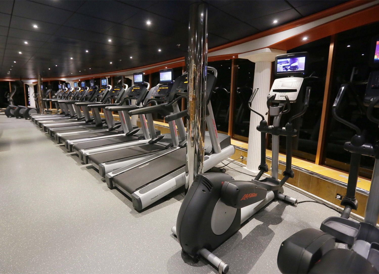 All types of relaxing and rejuvenating treatments are available at the Cloud 9 Spa during your Carnival Legend cruise. The spa facilities include two saunas, two steam rooms, and ten massage rooms. Treatments on the spa menu include a variety of facials, massages, acupuncture, tooth whitening, and salon services for both men and women. There is also a Fitness Center, fully equipped with Life Fitness equipment, beauty seminars, and specialty classes.