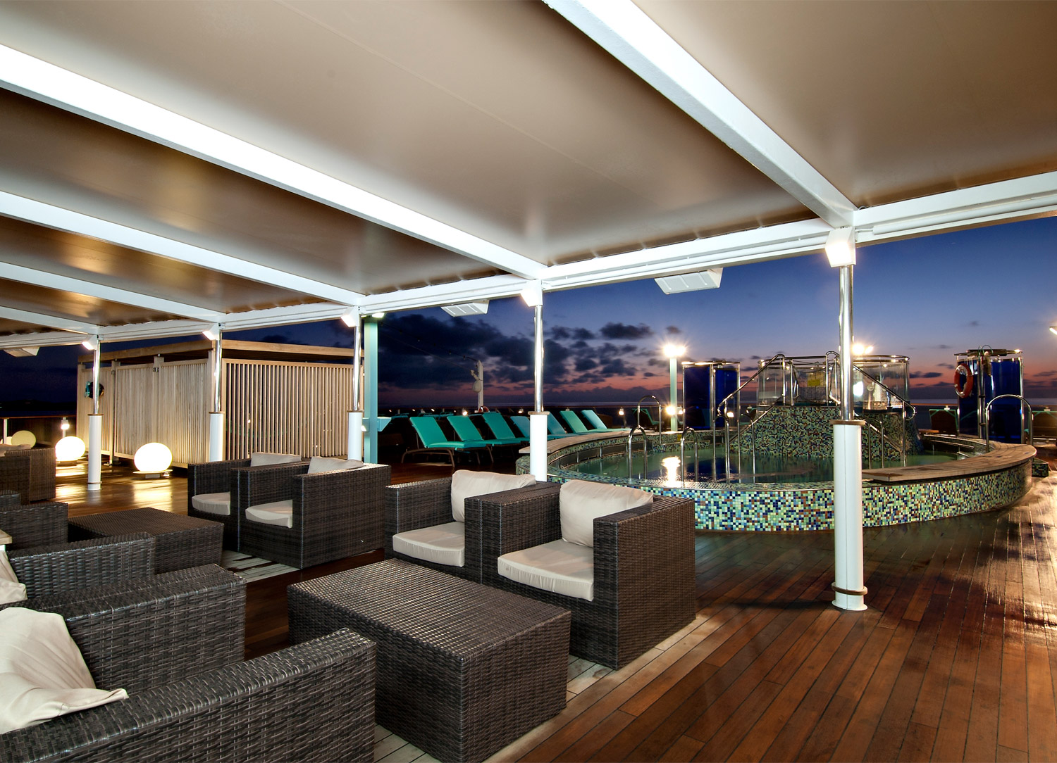 If you are looking for a quiet and relaxing place to unwind aboard Carnival Legend, look no further than Serenity. An adults-only area of the ship, Serenity is the perfect place to read a book, have a drink from a bar, and rest on a hammock or lounge chair.