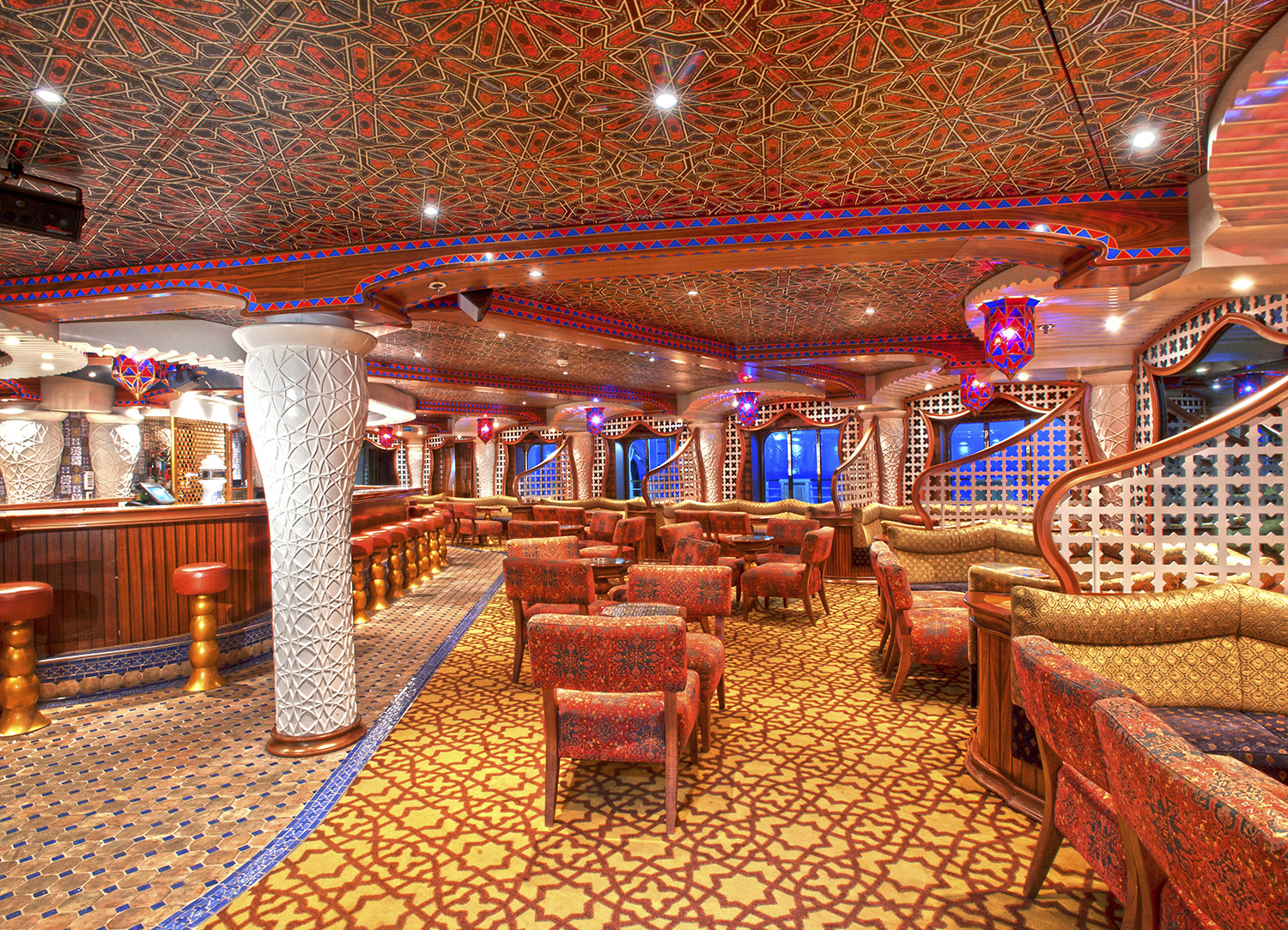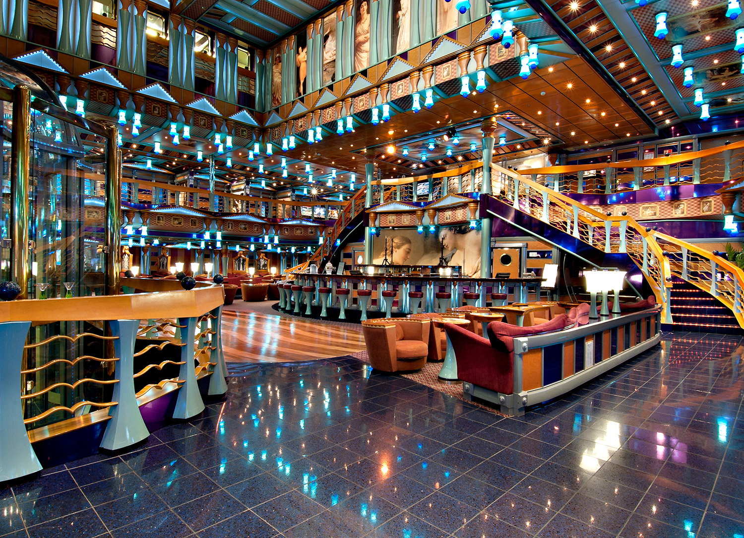 The Phantom Lounge is Carnival Miracle’s three-story main show lounge. Here, you can catch jaw-dropping, elaborate Playlist Productions, useful seminars, interesting talks, dance classes, and more. You can also participate in Deal or No Deal, Bingo, and other audience-participation games! With an on-site bar and plenty of comfortable seating for all, don’t be surprised if you find yourself spending lots of time during your cruise here!