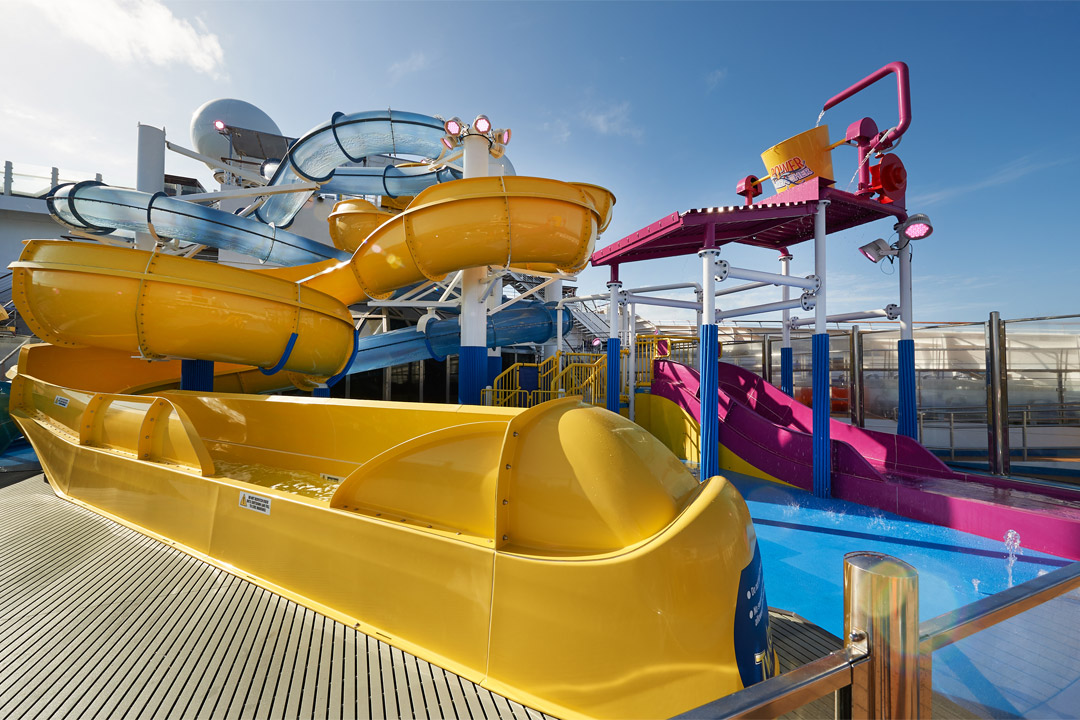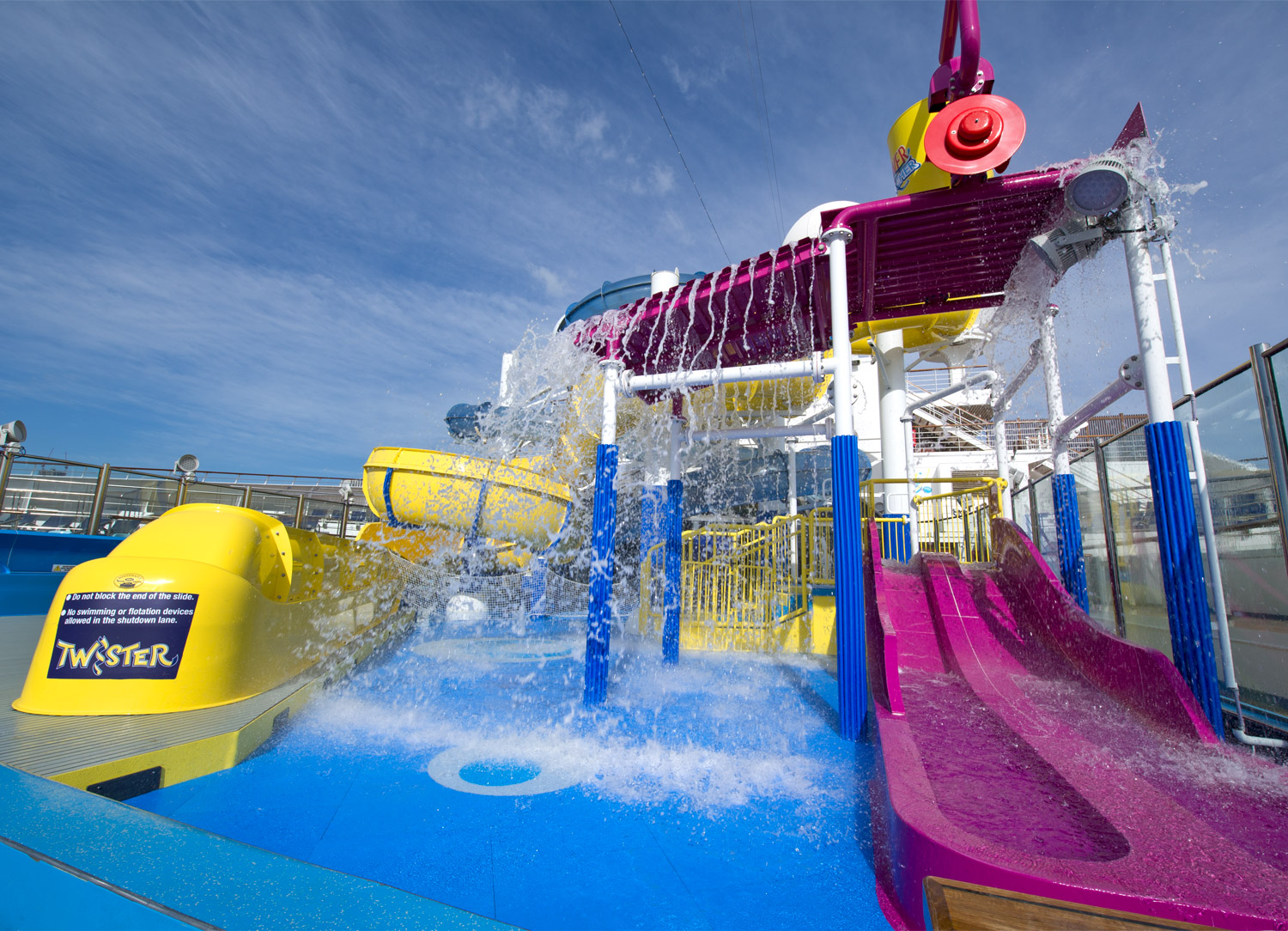 If you don’t mind being splashed, Carnival Radiance’s Waterworks aqua park is the most fun place to spend sunny afternoons. Tumble your way down the thrilling open Twister Waterslide, with over 200 feet of wet and wacky bends, or take a spin down the exciting 203'-long AquaTunnel. Cool off quickly beneath the 300-gallon Power Drencher tipping bucket! There are even designated slides and spray toys for little ones who aren’t big enough to conquer the giant slides. It’s a great time for all ages!