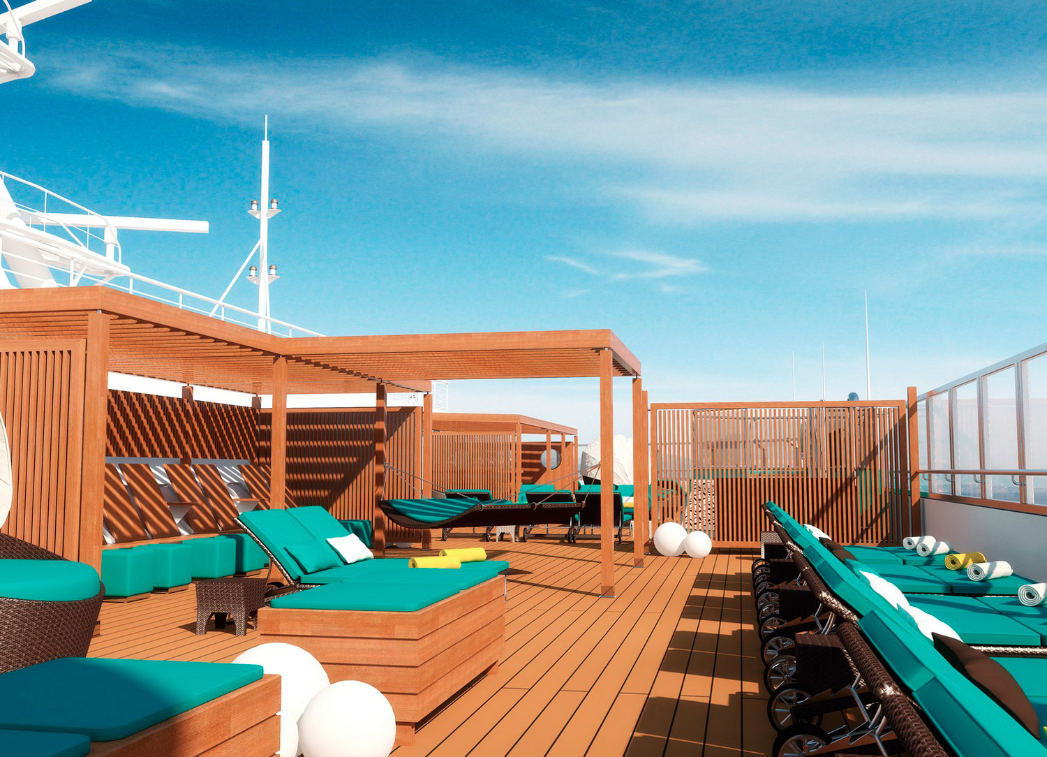 The pool deck has everything you need for a typical pool day on a Carnival Radiance cruise, plus more! Swim or splash in the large saltwater pool or take it easy in one of the warm, bubbly hot tubs with a drink from the nearby Siren’s Bar. With mouthwatering food venues conveniently located nearby, you won’t have to wander far for food. Enjoy places such as Guy’s Burger Joint, BlueIguana Cantina, or Pizzeria del Capitano. If none of those suit your cravings, you’re certain to find what you want in the Lido Marketplace. You can also enjoy the Seaside Theater, the huge poolside screen that shows fun programming during the day before converting into an outdoor cinema by night.
