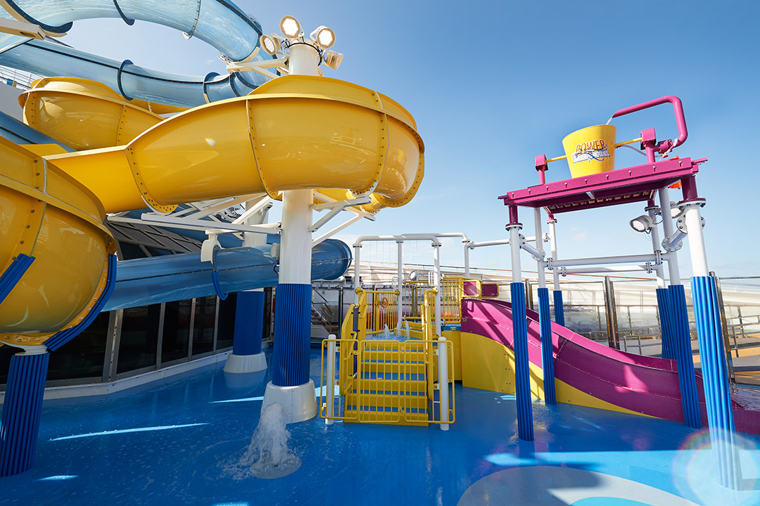 If you love waterparks, then you’re going to love Carnival Sunrise cruise, which has its very own! Among the excitement of screaming and splashing, you can ride down the daring 212’-long spiraling open Twister Waterslide or 203'-long enclosed AquaTunnel slide, get soaked underneath the 150-gallon Power Drencher tipping bucket, race amidst kids at the Mini Racer slide, or enjoy the splash area. It’s a great part of the ship to spend unforgettable time with friends and family.