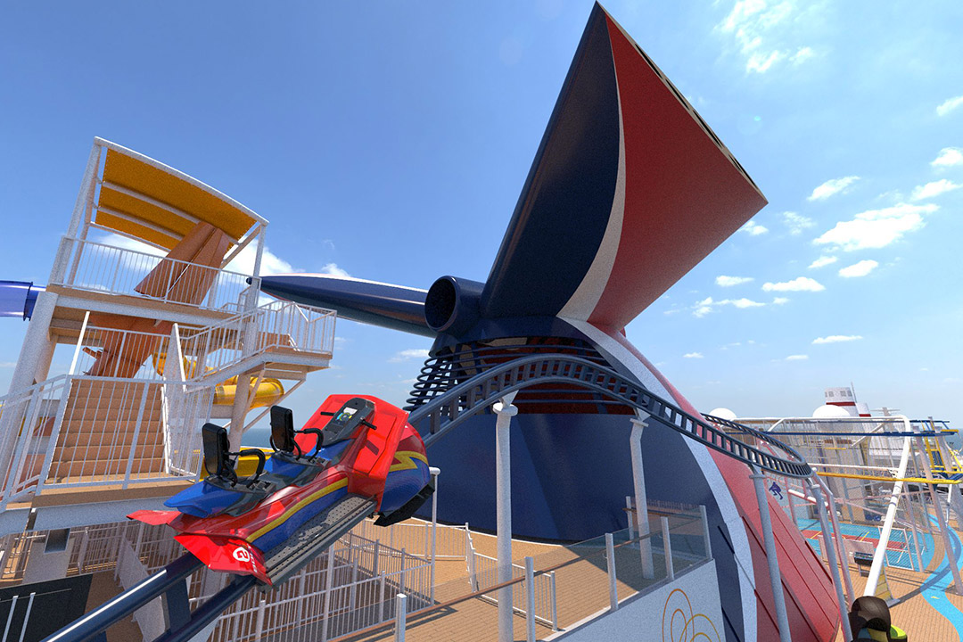 Experience the first rollercoaster at sea in this special partnership between Carnival and Munich-based Maurer Rides! Guests can control the speed of their electric-powered car, choosing to set the pace as fast or slow. You can go 190 into the air over the ocean, twisting and turning, all while taking in some fabulous views! BOLT has a minimum height requirement of 43 inches and a maximum height of 76 inches.