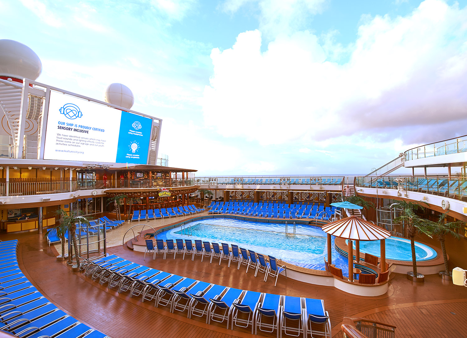 A tranquil adults-only retreat aboard Mardi Gras, Serenity is a great place to spend some time if you're looking to just relax during your cruise. Some of the things to do at Serenity is reading a book, enjoying the view, having a drink from a bar, and resting on a lounge chair or hammock.