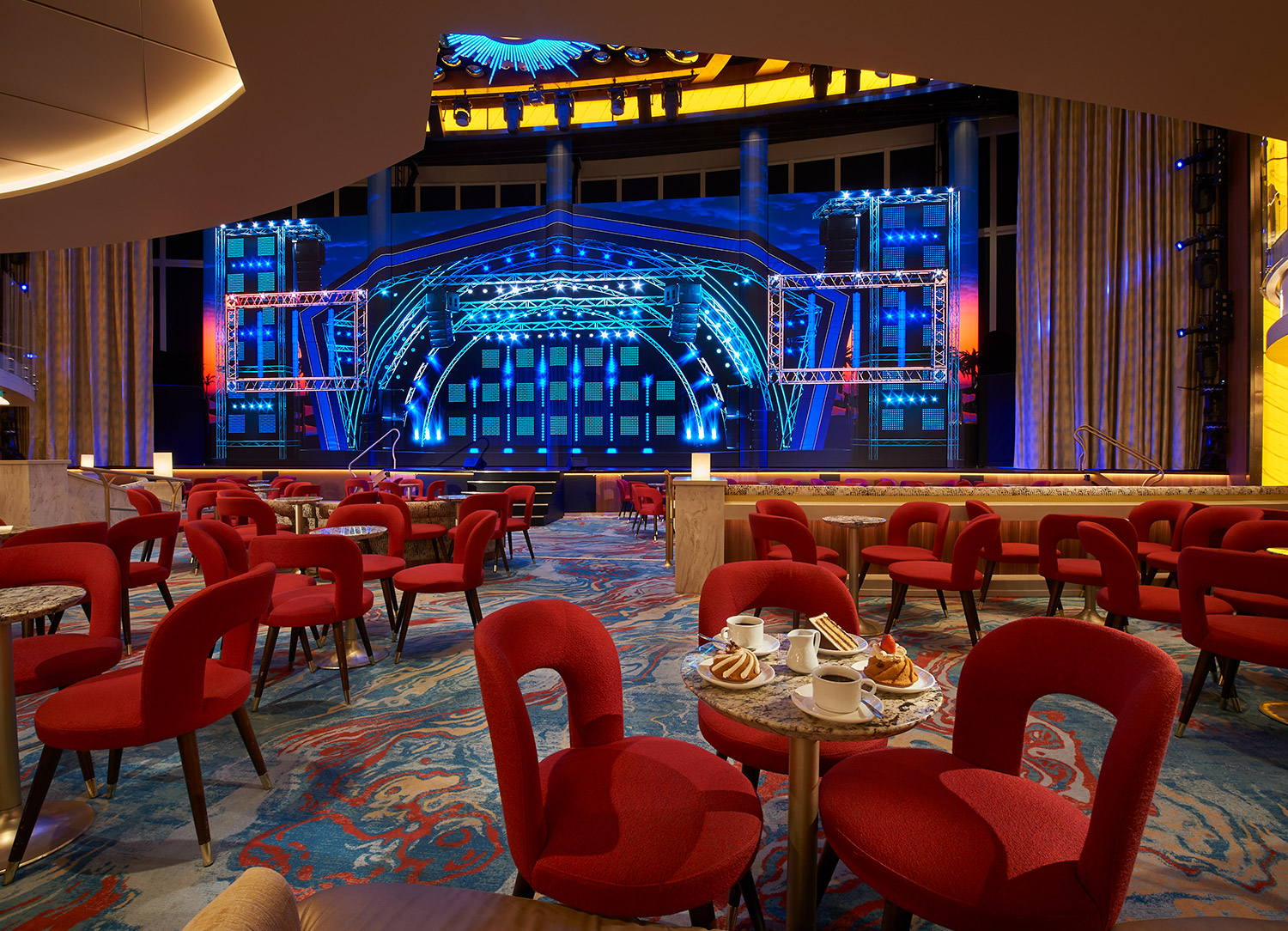 Carnival's FUN Ship 2.0 enhancements are taken even a step further on Mardi Gras, with the inclusion of Carnival's latest dining and entertainment innovations! These include outdoor seating options at specialty eateries like classic American steakhouse Fahrenheit 555. Guests can also sate a candy craving at the sweetest place on the sea, Cherry on Top, the premium source for candy and ice cream creations onboard. The main dining room, Palm Restaurant, offers not only a feast for the hungry stomach but for the eyes as well, with striking, modern interiors created by award-winning designer BigTime Design Studios.