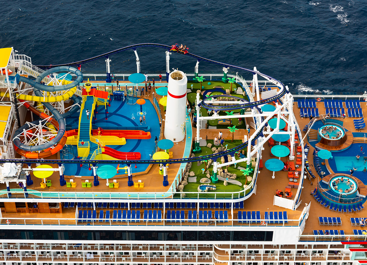 The are truly spectacular views both inside and out, with the various activities featured in the Ultimate Playground, such as Carnival WaterWorks, the ropes course, sports court, mini-golf, and brand new BOLT rollercoaster, the first rollercoaster at sea! - and more!