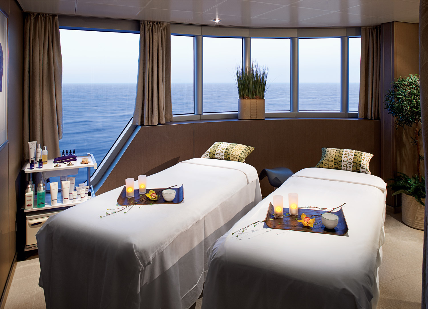 A unique and exciting feature of ms Nieuw Amsterdam cruises is its exclusive spa accommodations, which infuse the essence of the spa right into your personal stateroom or suite. If you enjoy spending time at the spa, you are certain to enjoy these types of staterooms. When you book a spa stateroom or suite, you will benefit from special spa-inspired in-room amenities, such as yoga mats, an iPod® docking station and a countertop water feature, in addition to exclusive spa treatments at the nearby Greenhouse Spa and Salon.