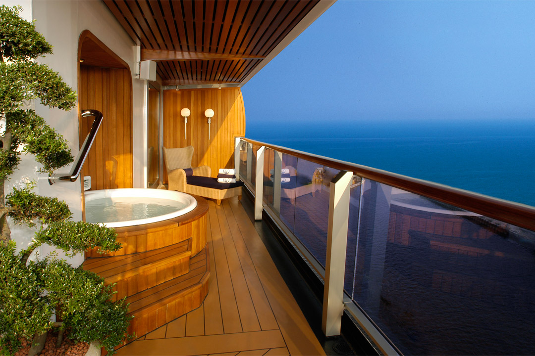 Staterooms have solid steel verandah railings instead of clear-view Plexiglas railings.