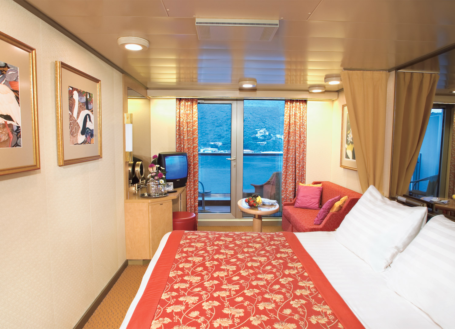 Staterooms have solid steel verandah railings instead of clear-view Plexiglas railings.
