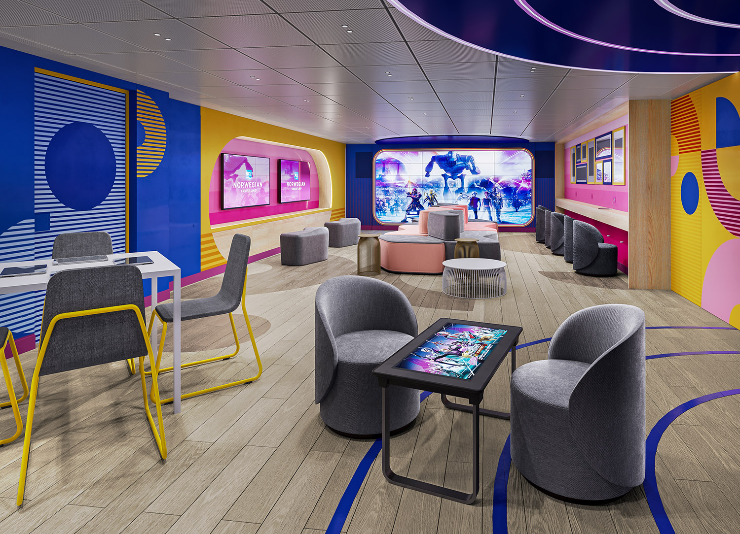 Families sailing on Norwegian Aqua cruise will like their teens to check out the new onboard facility, Entourage, and interactive LED Digital Sports Court.