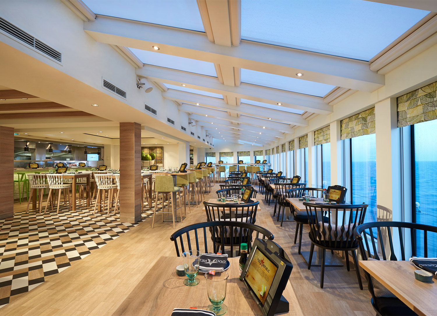 678 Ocean Place is the heart of Norwegian Bliss, where decks 6, 7, and 8 connect to bring you a centralized area of restaurants, bars, and lounges, including Mixx, The Cavern Club, and District Brew House. This area connects with the Waterfront, which provides guests with boardwalk-style, al fresco dining.