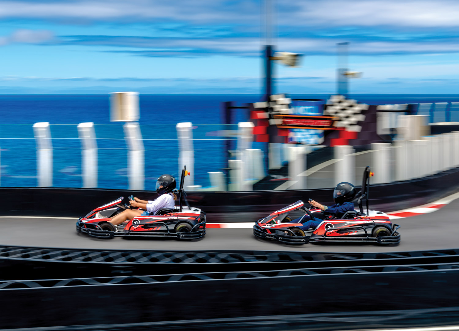 Get ready for some wet and wild fun on the top deck of Norwegian Bliss! Get racing at Aqua Racer, a brand new tandem water slide, or get screaming as you take the plunge on Ocean Loops! Younger children can make a splash at the Kids' Aqua Park. For those looking for a little less excitement, enjoy a lazy day lounging by the pools and hot tubs with a nice, cold drink in hand. Take a quick, fun race or play a harder-than-it-looks game of mini-golf!