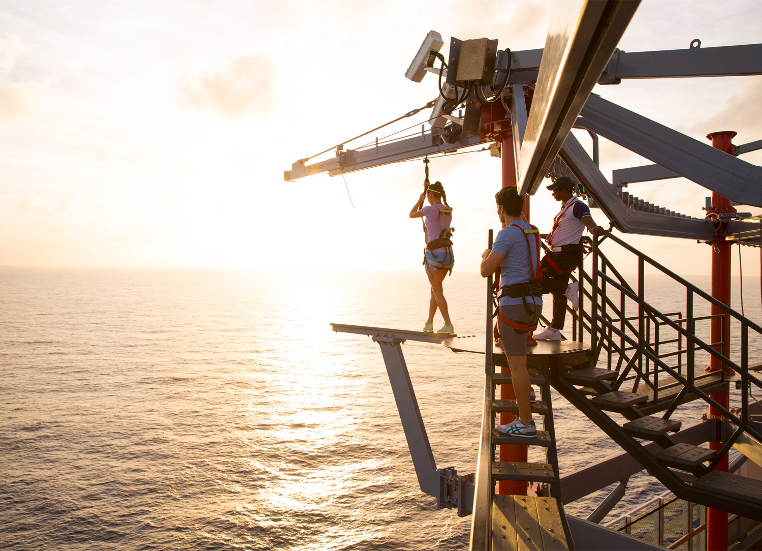 Get ready for some wet and wild fun on the top deck of Norwegian Escape! Get racing at Aqua Racer, an impressive tandem water slide, or get screaming as you take the plunge on Free Fall, the fastest water slide at sea! Younger children can make a splash at the Kids' Aqua Park. For those looking for a little less excitement in their lives, enjoy a lazy day lounging by the pools and hot tubs with a nice, cold drink in hand. Catch a breeze up high in the Ropes Course, where you can walk The Plank, ride the Sky Rails, or play a harder-than-it-looks game of mini-golf!