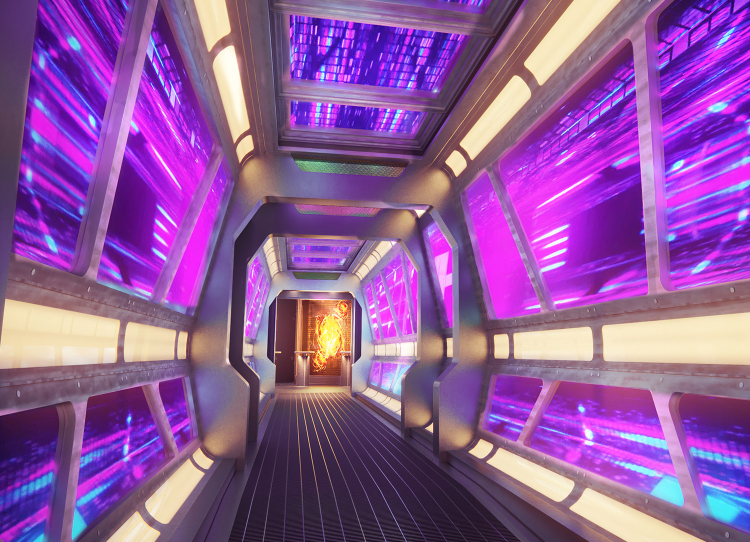 Inside stateroom door opens to center interior corridor and not towards balcony staterooms