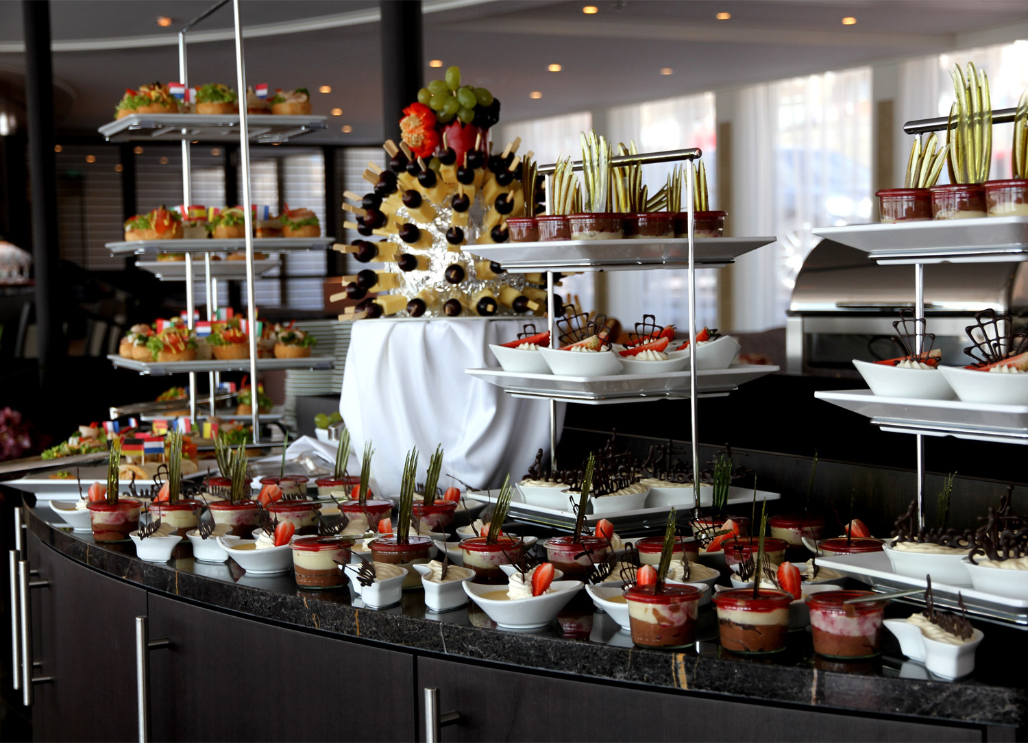 Embrace the arrival of each evening onboard Riviera with teatime. Four o’clock in the afternoon is globally recognized as teatime. Oceania Cruises takes this timeless tradition and makes it into a truly wonderful event each day of your cruise in the Horizon Lounge. Choose from an excellent selection of British tea and indulge in fresh finger sandwiches, rich scones, and sinful desserts as a classical string quartet plays softly in the background.