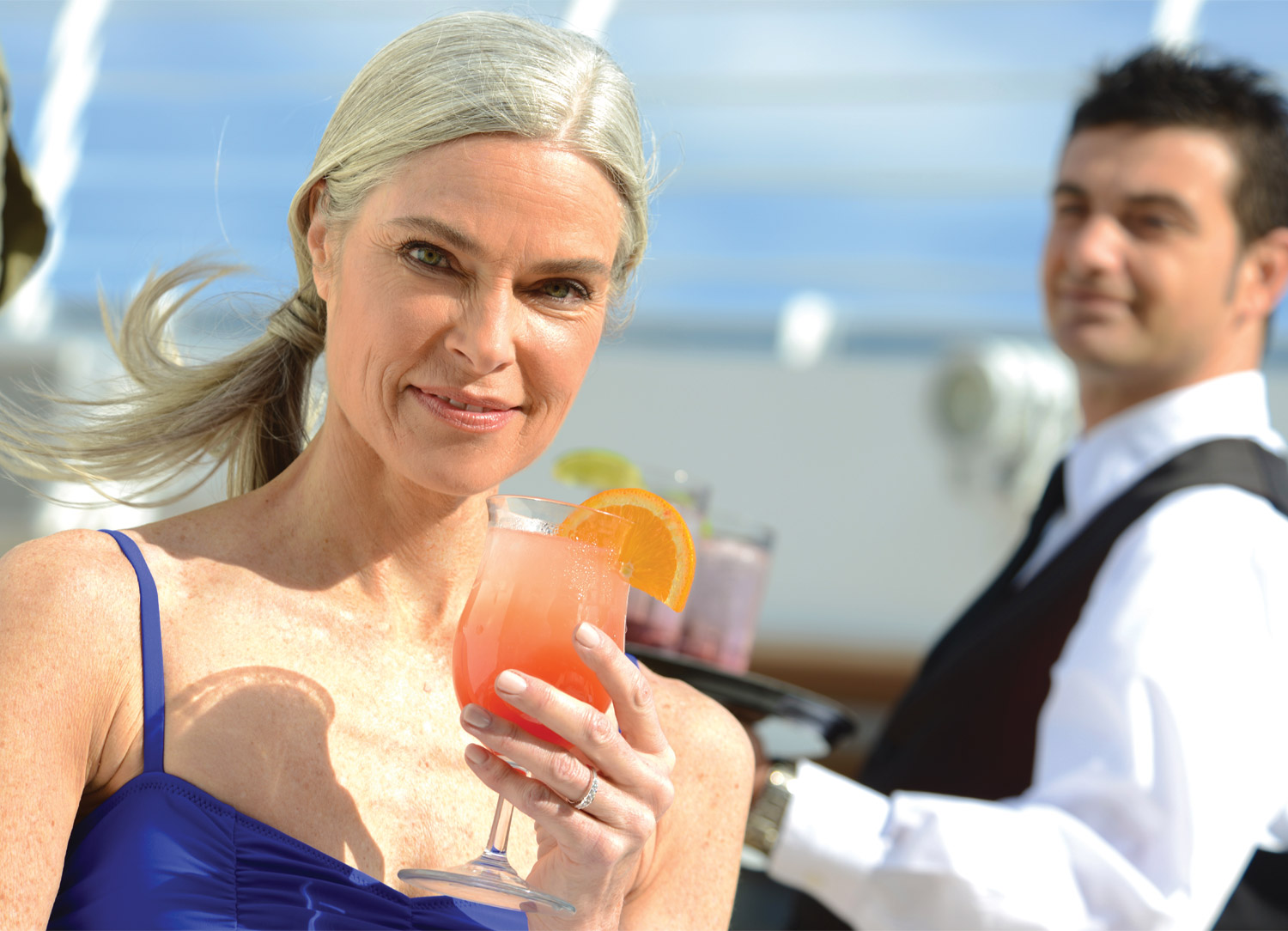 Enjoy nightly entertainment throughout your Riviera cruise in the Ship Lounge or lose yourself in a blissful body treatment at Aquamar Spa + Vitality Center