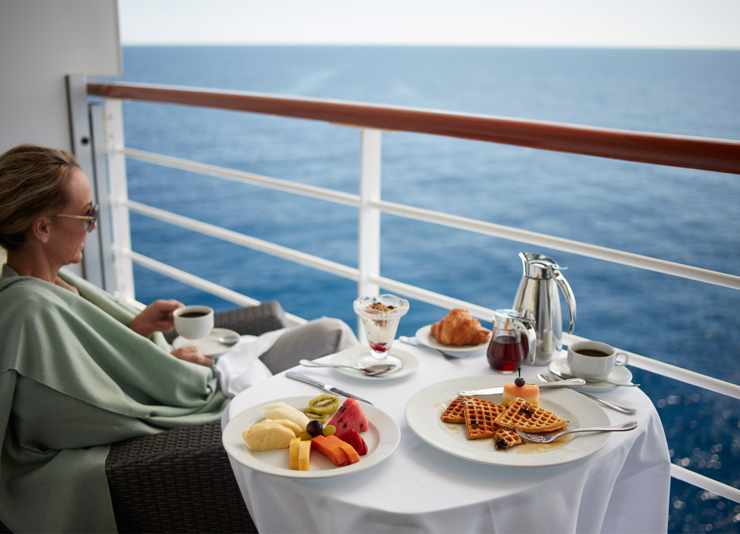 Offer is valid for new bookings made on or after October 1, 2024 only, for new bookings sailing January 1, 2025 onward. Offers and fares are subject to change or withdrawal without prior notice. All fares are per person in U.S. dollars, valid for residents of United States and Canada, based on double occupancy (unless otherwise noted) – except fares for Solo category are for a single traveler and are based on single occupancy – for new bookings only and may be withdrawn at any time. As of October 1, 2023, two free logins will be provided per suite or stateroom (one login for solo travelers), each of which can be used on one device at a time. All fares include gratuities for stateroom/suite attendants, butlers and dining waitstaff, as well as government taxes and fees. Additional gratuities apply to any other services or purchases made on board which will incur a service gratuity of 20%. Not all promotions are combinable. Cancellation fees and penalties apply. Every effort has been made to produce this info accurately; we reserve the right to correct errors. This offer may be modified or withdrawn without prior notice. Additional restrictions may apply.