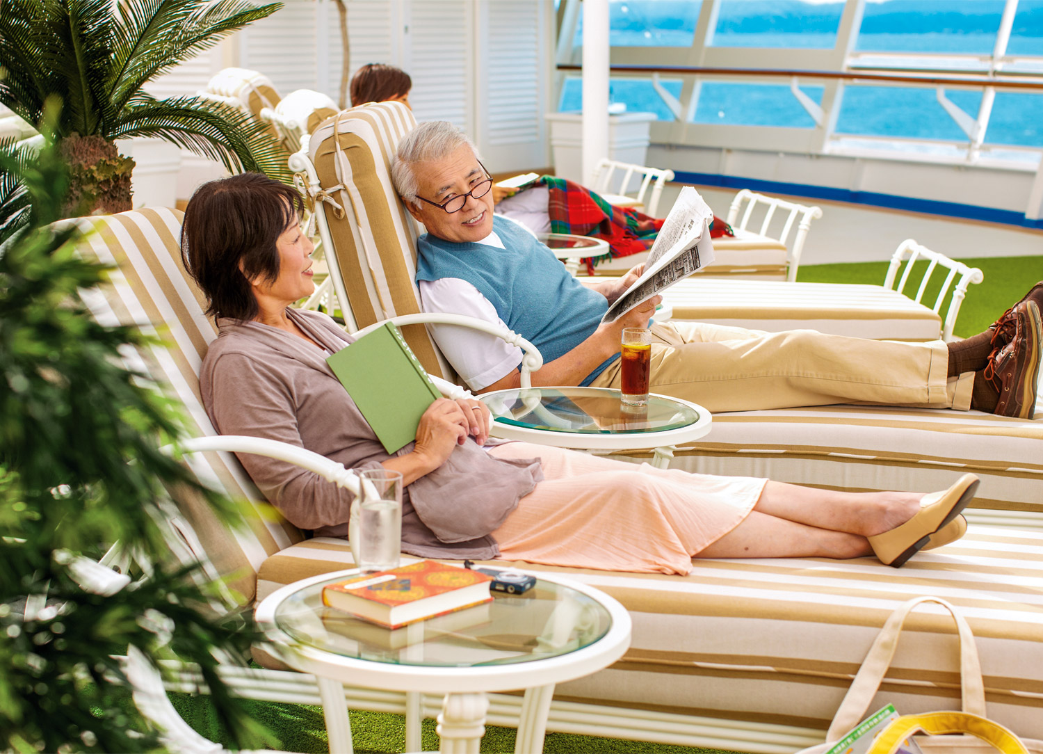 Featured only on Diamond Princess, this Japanese bath is a unique bathing experience that is both highly relaxing and a great way to experience Asian culture. Two sections of this area, both of which feature heated whirlpools and other sensational relaxing features, are reserved for men and women, with a unisex hydrotherapy pool area.
