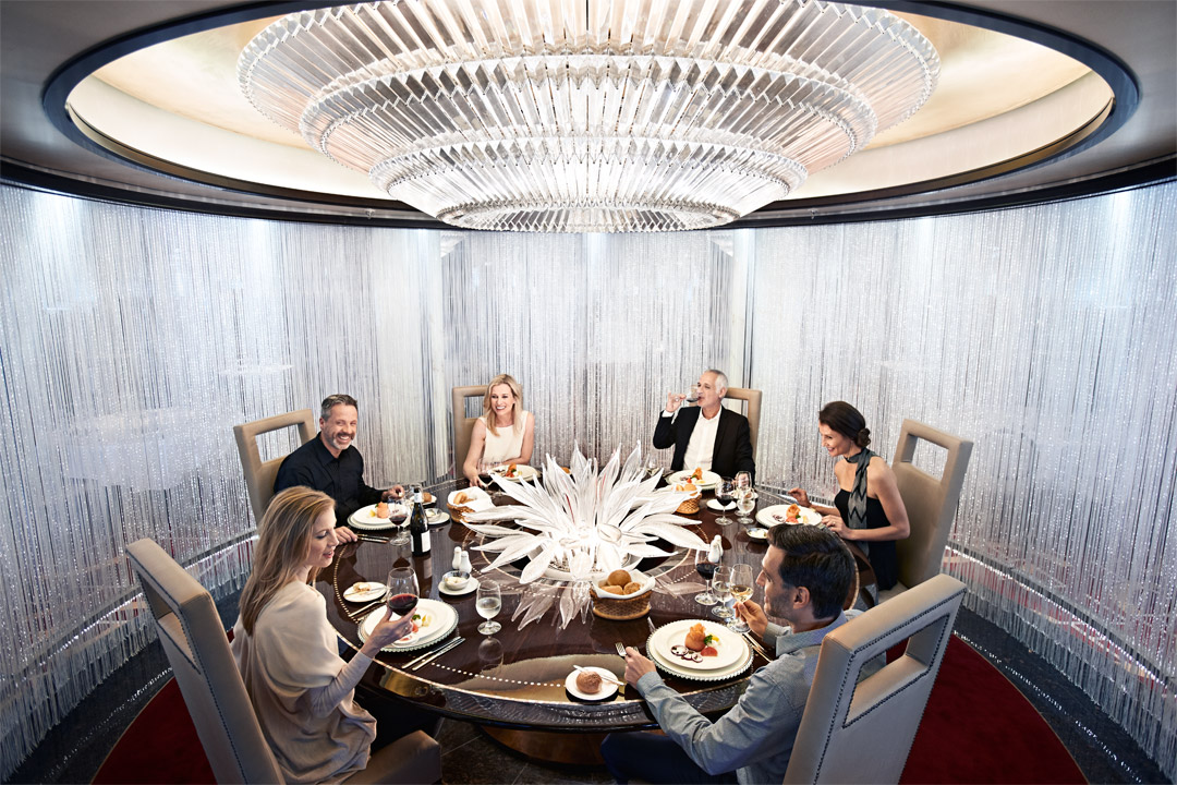 champagne and hors d’oeuvres. A softly-lit curtain of light surrounds the diners, creating a private space within the Concerto dining room. Dinner is served on a custom-made glass table. A $95 per person free applies for those that opt to dine at Chef’s Table Lumiere (subject to change).