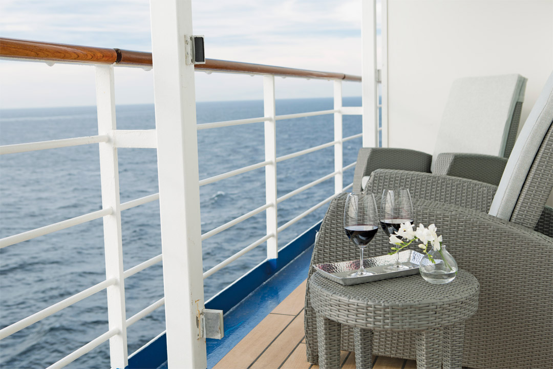 Kick off your unforgettable with a complimentary bottle of Welcome Champagne before enjoying stately amenities such as fresh fruit and a complimentary in-suite mini-bar setup with refill. 98% of accommodations onboard Seven Seas Navigator have a private, fully-furnished balcony where you can read, enjoy coffee, or simply relax and admire the breathtaking scenery.