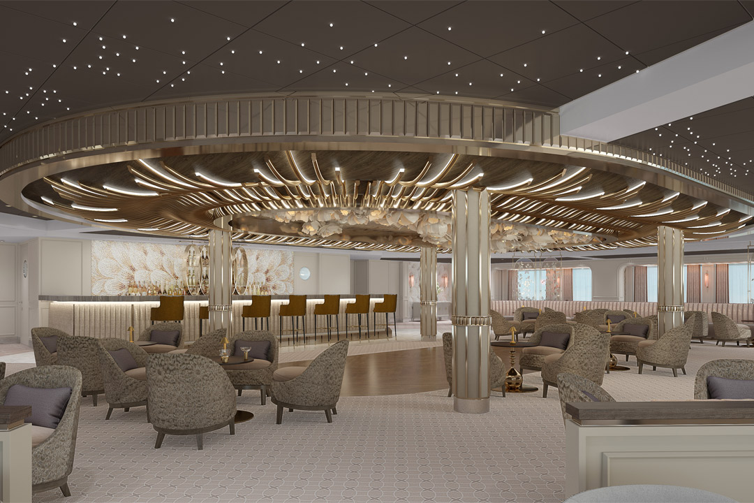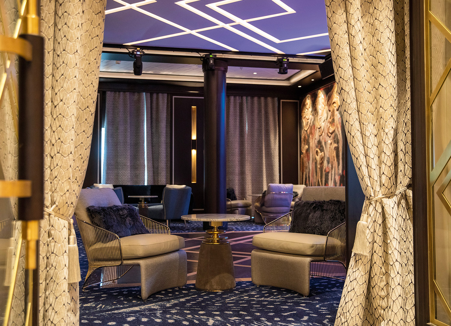 While sailing on a Seven Seas Splendor cruise, stop by the incredible Constellation Theater to catch a variety of live performances. This two-tiered venue is designed for a perfect view, no matter where you sit. Paying homage to ornate theaters from Hollywood’s golden age, the theater’s seating banquettes, ceiling architecture, and an intricate entryway mosaic are all tired together with a subtle swan motif. After a performance, you can mingle for cocktails in the Horizon Lounge, as well as enjoy virtuoso performances by resident musicians.