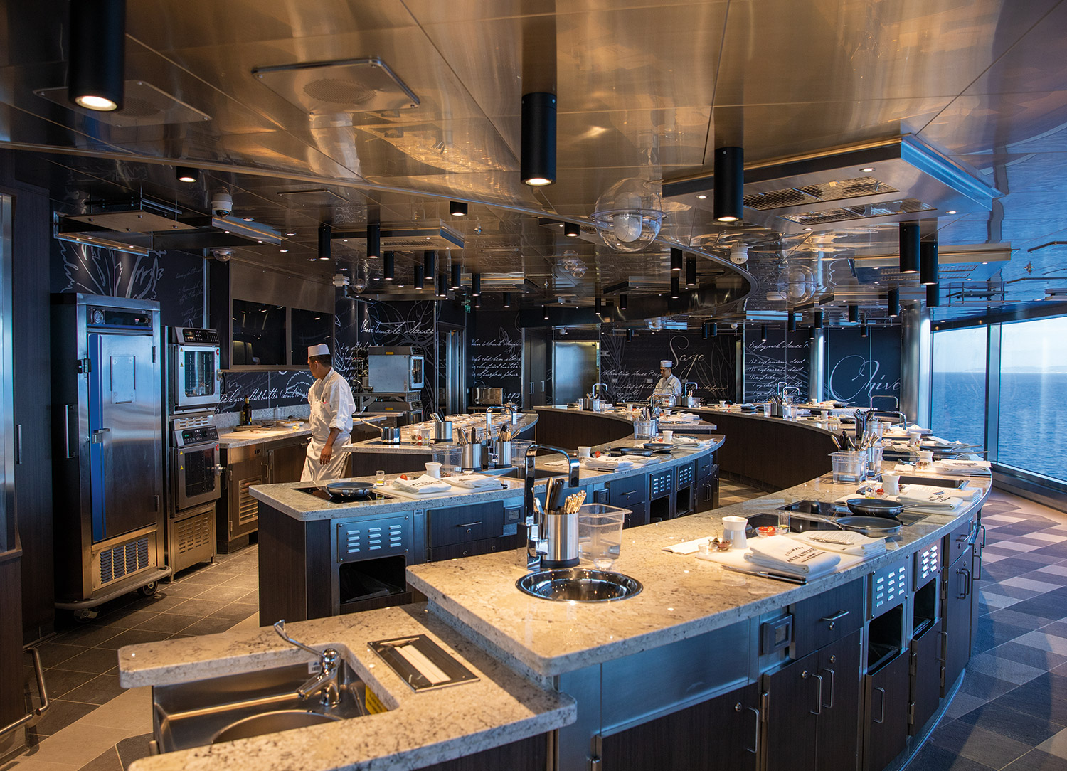 After taking a class in the state-of-the-art Culinary Arts Kitchen aboard Seven Seas Splendor, you might be able to throw an impressive dinner party after returning home! Upon entering this venue, you’re certain to feel like a true chef-in-training as you step up to one of the workstations, modeled after those found in prestigious culinary schools around the world and fully equipped with top-of-the-line induction cooktops, stainless steel sinks, and a comprehensive collection of cooking essentials. Whether you’re new to the culinary scene or a seasoned expert yourself, master chefs will teach you all kinds of new and exciting techniques that will evoke the satisfaction of taste buds everywhere. Discover how to prepare all types of foods, from Moroccan specialties to Mediterranean delights to Mexican favorites and nearly everything in between (culinary classes vary by cruise). Learn how to properly master knife skills, cook with high heat, and even host an unforgettable dinner party for your friends and family. These are just some of the incredible classes you can take! Please note that each class requires an additional fee and is not included as part of the all-inclusive cruise fare.