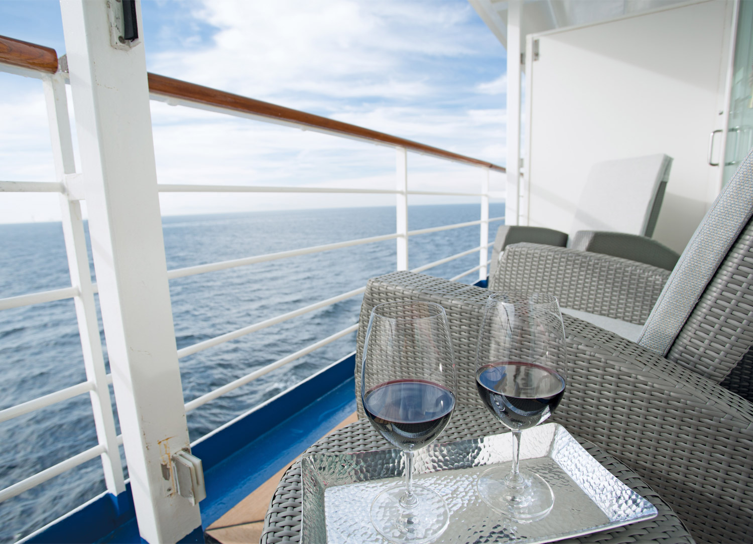 Kick off your unforgettable with a complimentary bottle of Welcome Champagne before enjoying stately amenities such as fresh fruit and a complimentary in-suite mini-bar setup with refill. All accommodations onboard Seven Seas Voyager have a private, fully-furnished balcony where you can read, enjoy coffee, or simply relax and admire the breathtaking scenery.