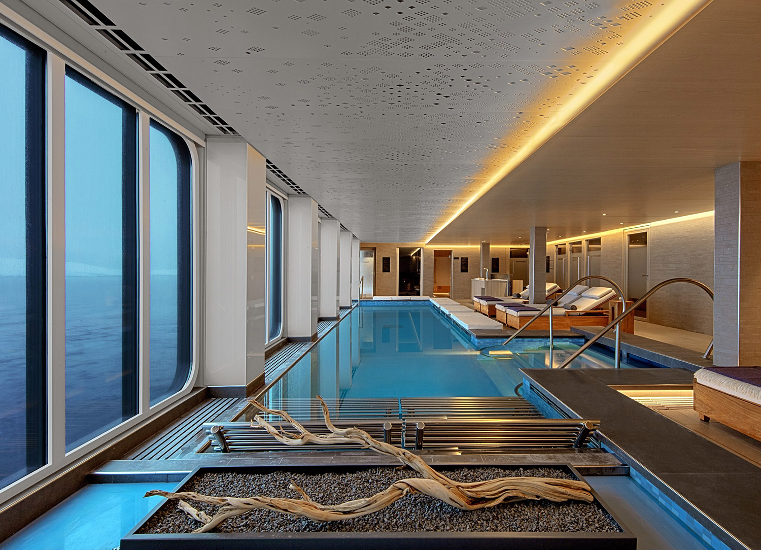 After spending a wonderful day exploring your new destination, you can relax in The Nordic Spa aboard Viking Polaris. It offers incredible options to experience healthy Nordic traditions that include massages, a sauna, an indoor heated pool, and a badestamp, which is a wood-sided hot tub opening to the outside. Access to this spa is complimentary, however, some services are available for an extra fee.